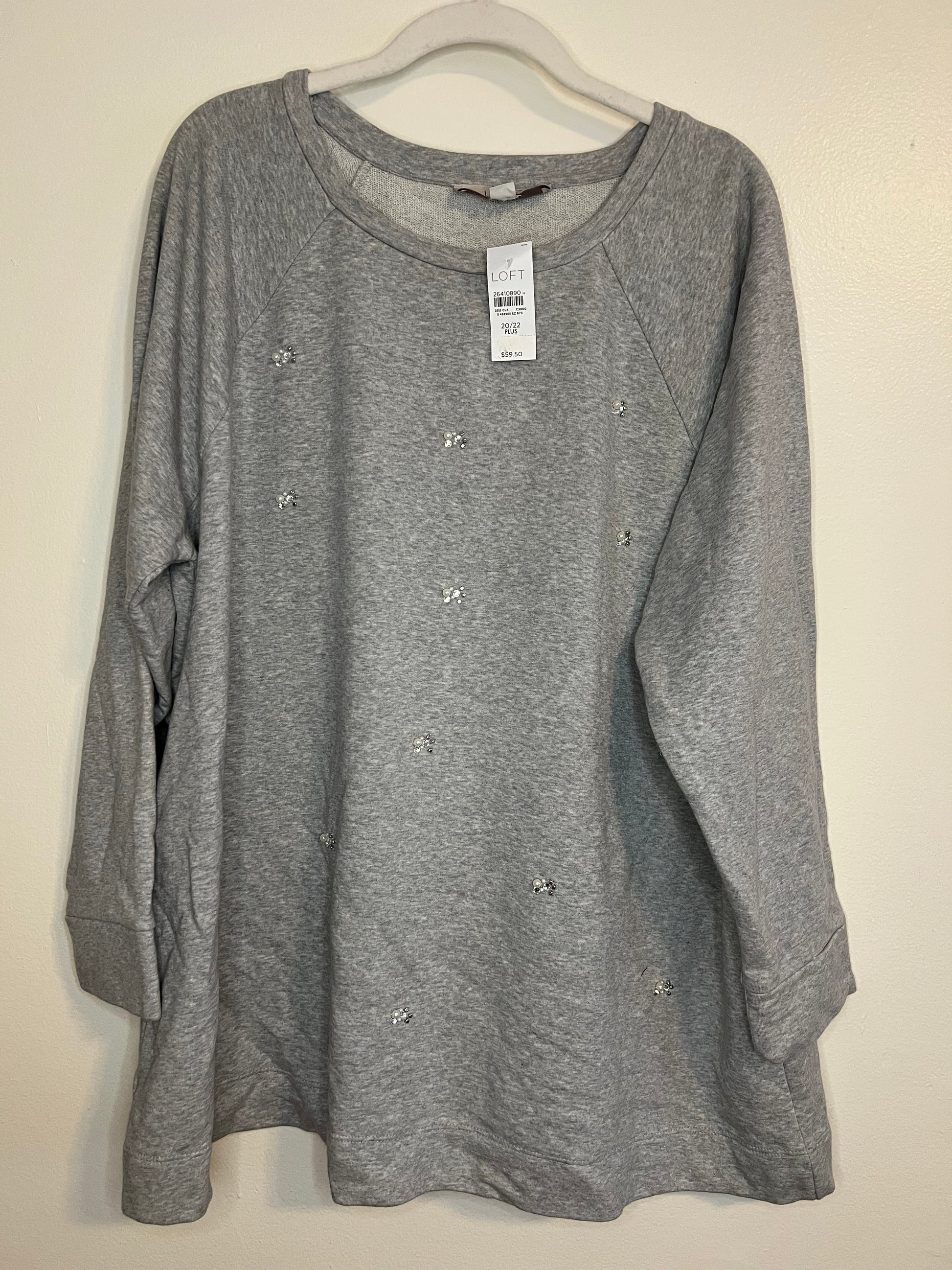 Loft Gray Pullover Sweater With Jewels